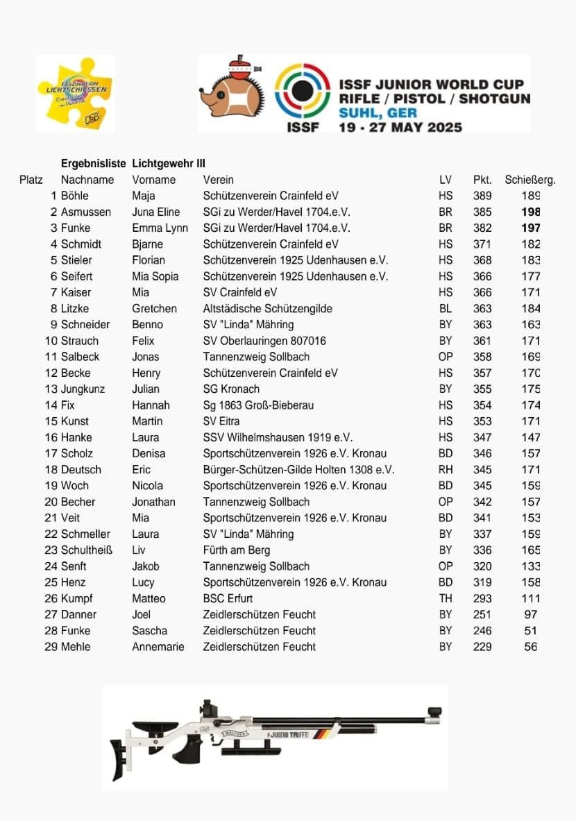 Mit dabei unsere Enya Püschel in der Disziplin 3x 20 Schuss Kleinkaliber Gewehr.