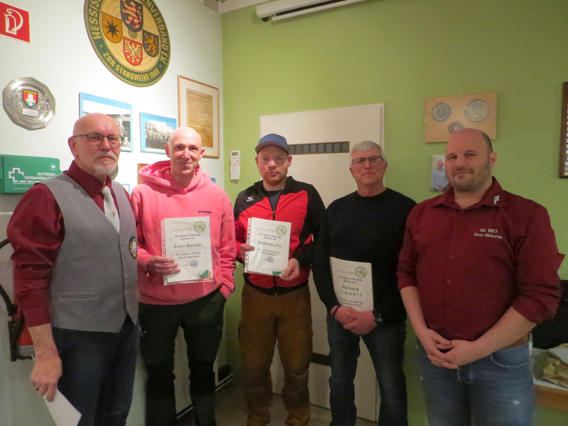 Für langjährige Mitgliedschaft erhielten Urkunde, Ehrennadel und Verzehrgutscheine: